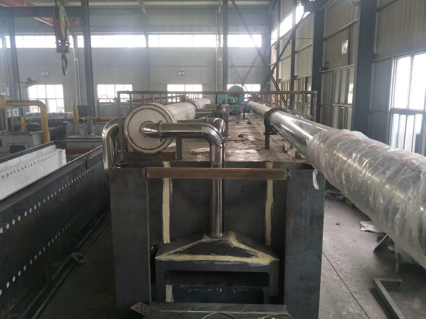 The heating furnace body is connected to the water cooling jacket. A mesh belt passes through the furnace chamber. Driven by a rotating mechanism, the mesh belt feed port moves toward the water cooling jacket feed port.